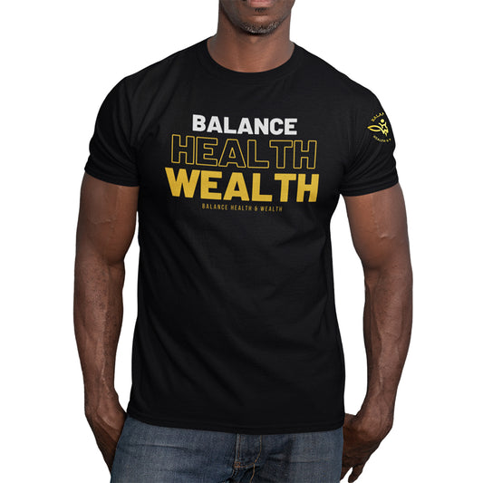 Balance Health & Wealth Black T-shirtRegular price $40.00 USDRegular priceUnit price / per$50.00 USDSale price $40.00 USDSale